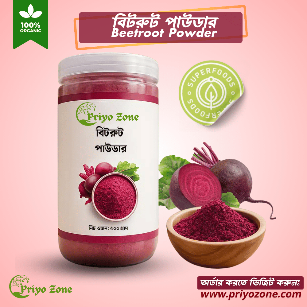 বিটরুট পাউডার (Beetroot Powder) হল প্রাকৃতিক বিট বা বিটরুট থেকে তৈরি করা এক ধরনের গুঁড়ো, যা বিটের পুষ্টিগুণ ধরে রাখে এবং সহজেই বিভিন্ন খাবারে যোগ করা যায়। প্রাকৃতিক পুষ্টিগুণে ভরপুর এই বিটরুট পাউডার ।